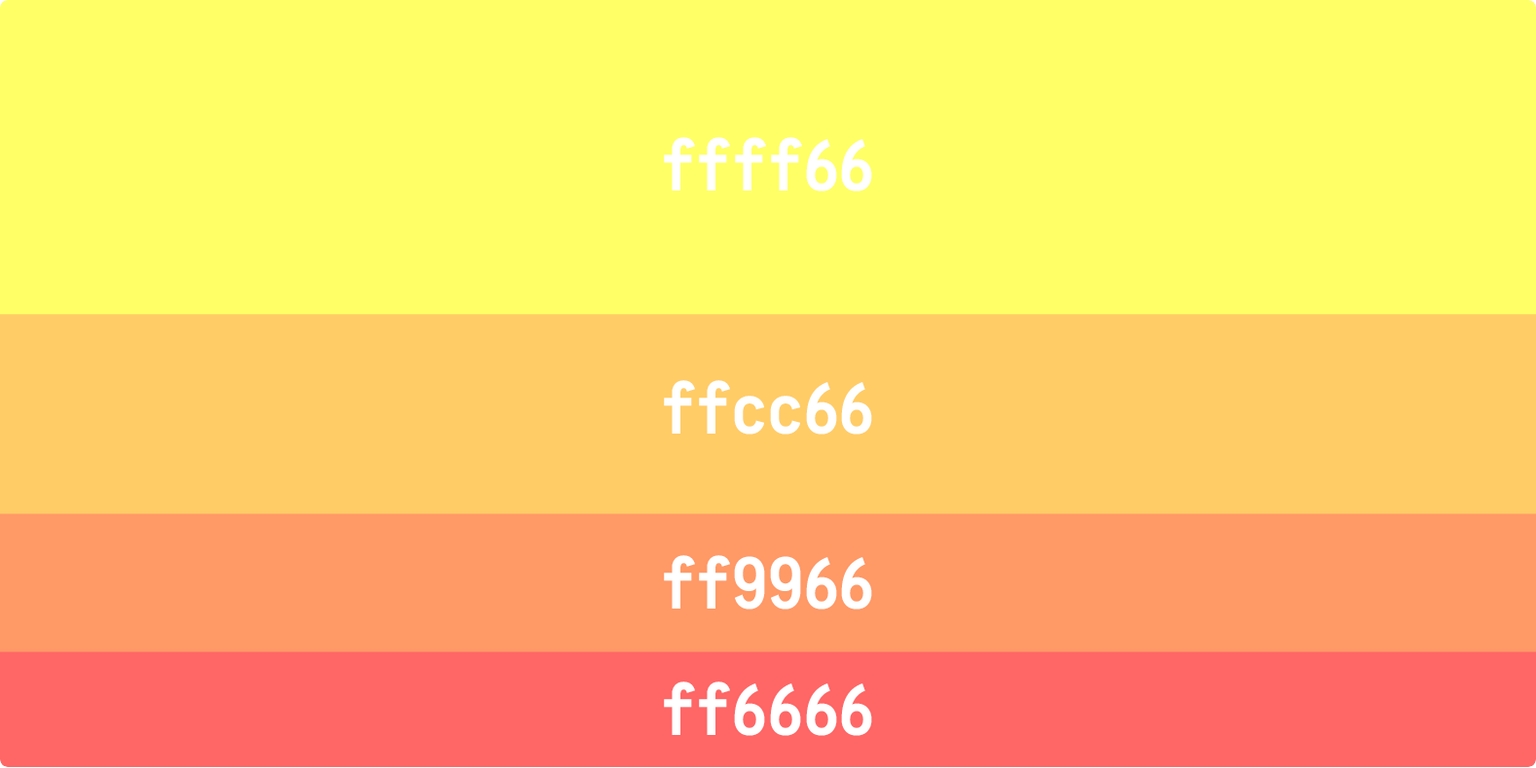 <figure><img src="https://799490287-files.gitbook.io/~/files/v0/b/gitbook-x-prod.appspot.com/o/spaces%2FrBivE1FyCVwIqE5rQR3A%2Fuploads%2FaSIkcyUwThYR2ZSAXKyr%2Fyellow%20orange.jpeg?alt=media&#x26;token=c2495ed8-48b8-4b86-b35d-d4b7c61f2b28" alt=""><figcaption><p>Yellow, Orange, Another Orange, Red</p></figcaption></figure>